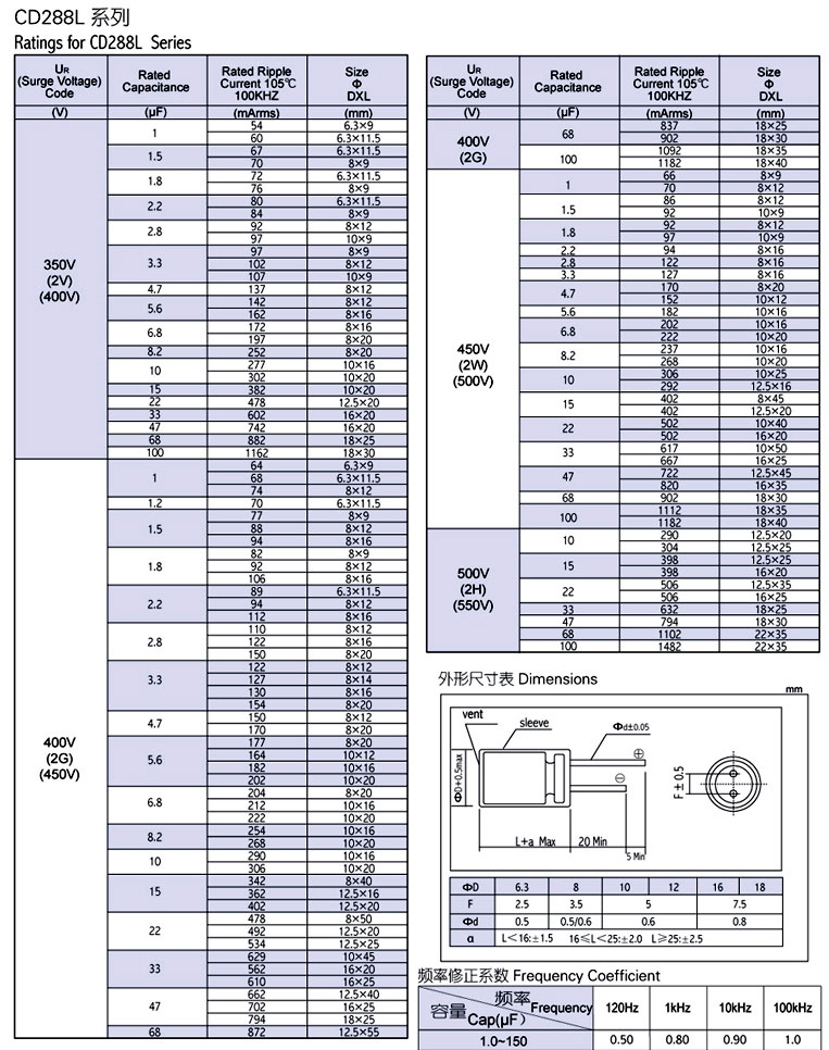 适用LED照明电源电容器